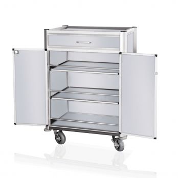 Servisní vozík na minibar, 85 x 60 x 135 cm, bílá s lesklými hranami, hliník, MDF. Funkční a elegantní servisní vozík určený pro doplňování minibarů v hotelových pokojích. Kombinace kvalitních materiálů a moderního designu zajišťuje dlouhou životnost i reprezentativní vzhled při každodenním použití. Vhodné pro použití v hotelu.