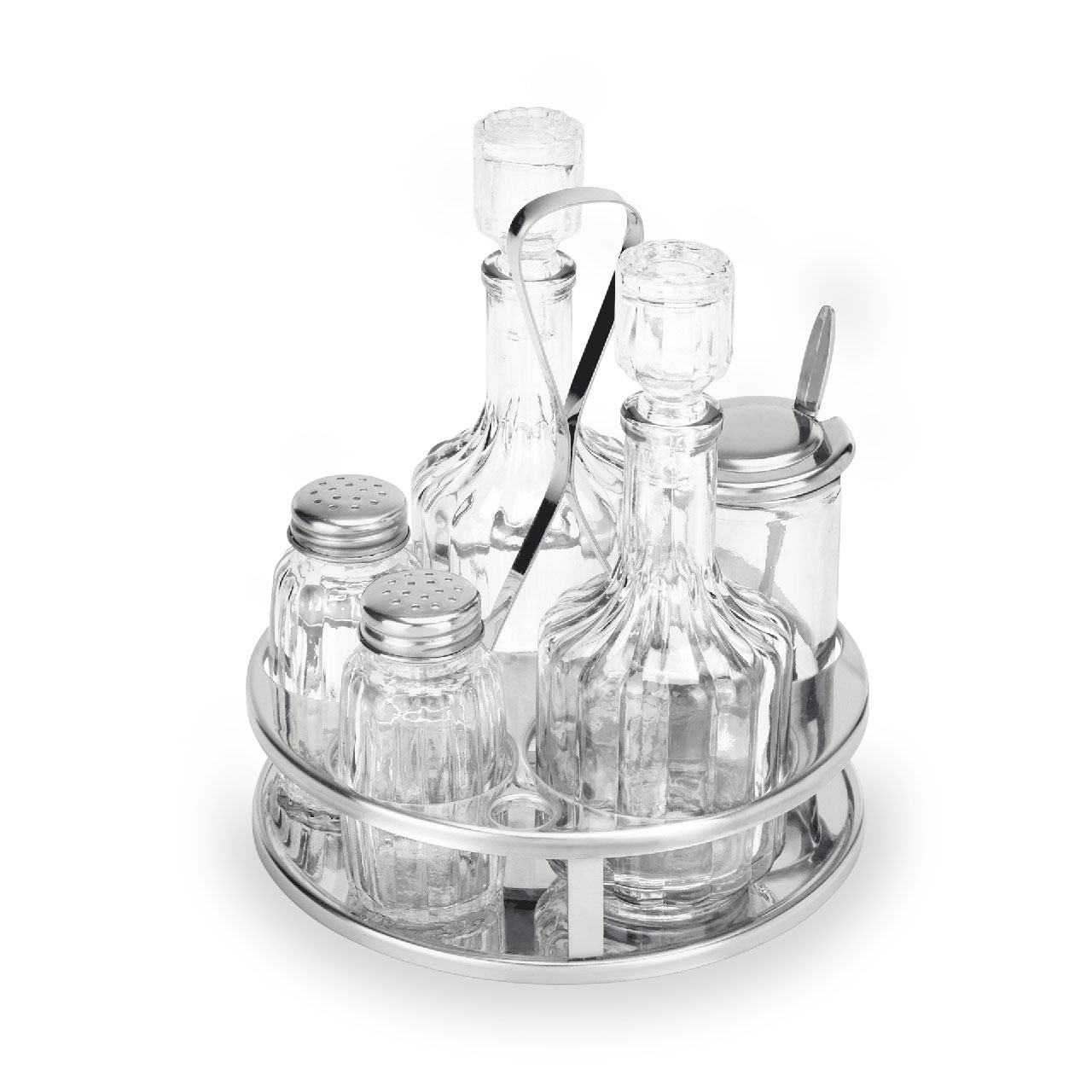 Menážka 5-dílná Menážka 1480, ocet a olej, Sůl a pepř, nádobka na omáčku, výška 17 cm, nerez, sklo. Ideální pro profesionální použití v gastronomii. Vysoce kvalitní materiál zajišťuje dlouhou životnost a spolehlivost.
