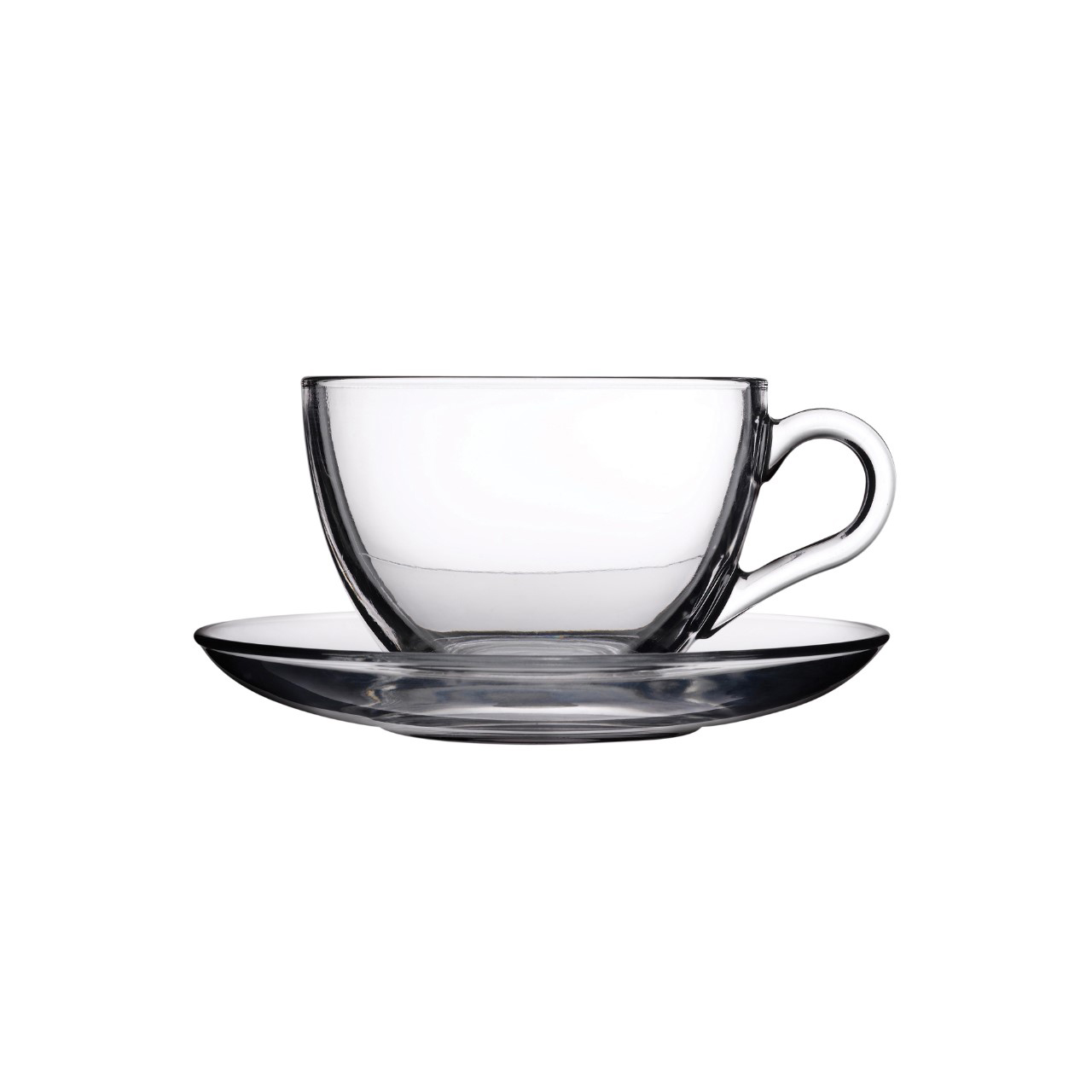 Skleněný šálek o objemu 0,215 l s podšálkem vhodný na horké nápoje. Tato položka je doporučena pro podávání PUNCHES.