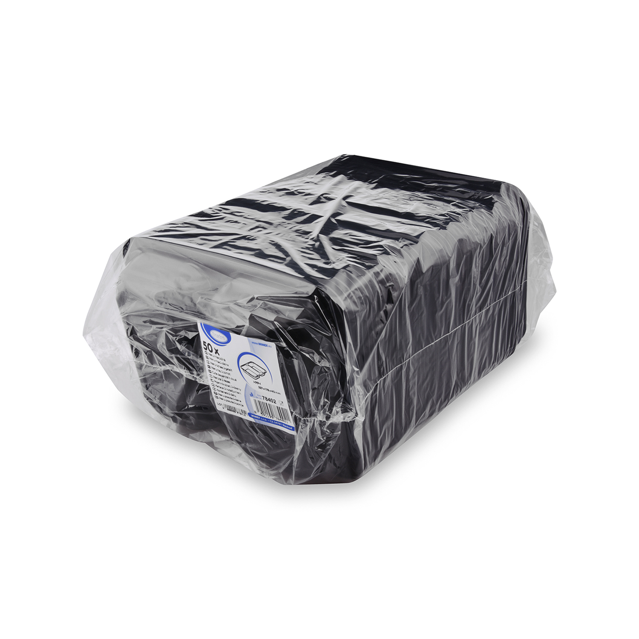 Menu mísa (PP) 2dílná černá 22,7 x 17,8 x 4 cm. Rozsah použití -20°C až +100°C. Vhodné pro zatavovací stroj 100030438. Zatavovací fólie najdete pod číslem 100030439.