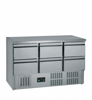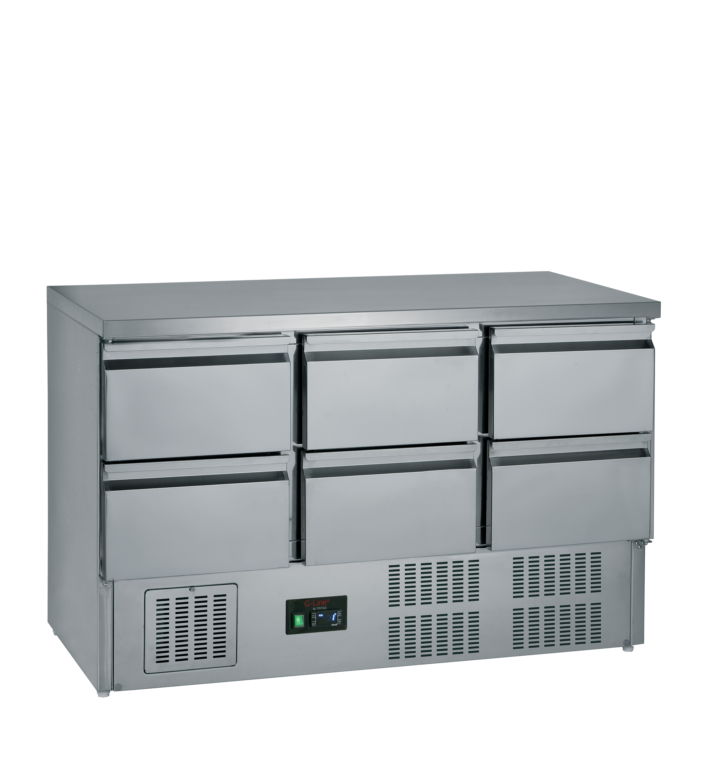 Přednosti dvou standardních chladicích zařízení se zde spojily v praktický kousek za skvělou cenu. TEFCOLD GS365ST je skvělou volbou pro bistra a kuchyně, kde chcete mít ingredience hezky organizované a zároveň na dosah ruky. Ekonomický model • 6 ZÁSUVEK (s maximální vnitřní výškou zásuvky 175 mm) • PEVNÁ HORNÍ DESKA • AGREGÁT DOLE • SKVĚLÁ CENA