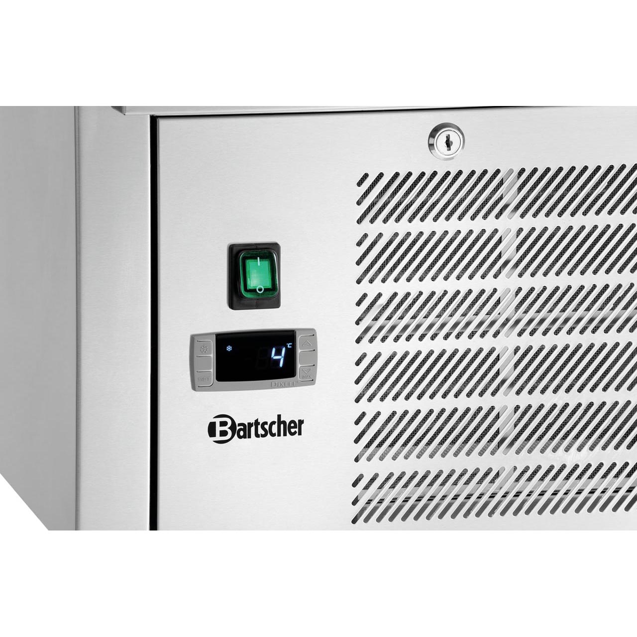 Chladicí stůl pro GN 1/1 do hloubky 150 mm. Obsah 140 litrů. Dolní skříňka pro GN 1/1. Příslušenství zahrnuje: 2 nastavitelné lišty: délka 535 x šířka 35 mm a 1 rošt 1/1 GN. Gastronádoby nejsou součástí dodávky. Nerezový filtr, lze mýt v myčce. Výměnné polyetylenové prkénko. Samouzavírací dvířka. Snadno přístupná technická jednotka. Chlazení cirkulující vzduch, kondenzační odpařování, s napěněným výparníkem. Chladivo: R290. Teplotní rozsah: 0 °C až 10 °C, digitální regulace teploty, termostat, izolace 45 mm. Digitální displej, řízení elektronické a tlačítko.. Vypínač zap/vyp, indikátor světla. Křídlové dveře, pant vpravo (nelze změnit), samouzavírací dvířka. - rozměr skříňky Š 368 x H 570 x V 590, formát GN 1/1 - rozměr celkem: Š 455 x H 700 x V 887 mm - příkon: 0,23 kW / 230 V / 50 Hz - hmotnost: 45,5 kg