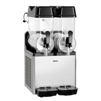 Pro přípravu studených nápojů, snadná údržba. Materiál nádoby polykarbonát. Materiál vřetena plast. Počet nádob 2, kapacita na nádobu 12 litrů. Nízká hlučnost. Kohouty lze demontovat. Teplotní rozsah -2°C do -5 °C. Nastavení: studený nápoj, slush-zmrzlina. Přepínač ovládání teploty, lze přepínat samostatně pro každou nádobu. Osvětlení na víku. Vyjímatelné odkapávací misky, nádoby, odnímatelné vřeteno. Materiál: nerezová ocel, plast. Chladící kompresor, noční/denní režim. Chladicí kapalina R290 / 0,162 kg. Vypínač. Příkon: 0,6 kW / 230 V / 50Hz. Rozměr: Š 400 x H 520 x V 815 mm Hmotnost 40,0 kg