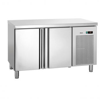 Dvoudveřový se 6 vsuvy, vzdálenost mezi vsuvy 70 mm, panty levý/pravý – nelze změnit. 1 chlazená skříňka, Š 335 x H 570 x V 554 mm, standardní formát skříně 1/1 GN. Materiál pracovní plochy nerezová ocel, uvnitř nerezová ocel / hliník. Chlazení cirkulující vzduch, kondenzační odpařování. Teplotní rozsah -22 do -18 °C, regulace teploty v krocích po 0,1 °C. Termostat, automatické odmrazování, izolace polyuretan, 50 mm. Chladicí kapalina R290 / 0,060 kg. klimatická třída 4 Pro okolní teploty do 30 °C. Nastavitelná výška nohou, nastavitelné od 125 do 200 mm. Digitální displej, elektronické ovládání, VYP/ZAP. Včetně 2 roštů. Příkon: 0,667 kW / 230 V / 50 Hz. Rozměr: Š 1340 x H 700 x V 850 mm. Hmotnost 92,4 kg.