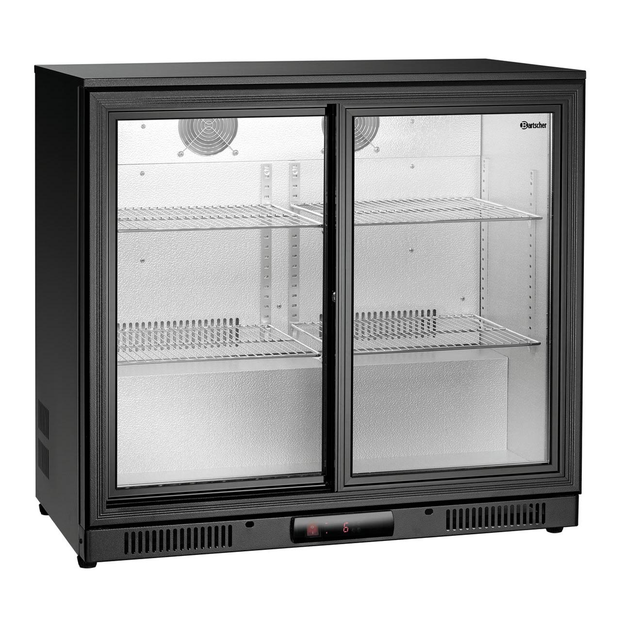 Barová lednička s objemem 176 litrů, samouzavírací posuvné dveře s dvojitým sklem. Digitální displej. Materiál nerezová ocel, barva černá. Vnitřní prostor hliník. LED osvětlení, samouzavírací dveře, nastavitelná výška nožiček. Dvoudveřová, posuvné dveře, uzamykatelná. Bezpečností dvojité sklo. - 4 pochromované rošty, výškově nastavitelné, rozměr Š 373 x H 344 mm - statické chlazení + dodatečné 2 ventilátory - teplotní rozpětí od 1 do 10 °C - elektronická regulace teploty, v krocích po 1 °C - termostat, izolace Cyclopentan, 45 mm pro stranu - chlazení R600a, do okolní teploty 30 °C - kondenzace odpařování vody, automatické odtávání - kontrolka rozmrazování, provozu, ZAP/VYP, kompresoru, teploty