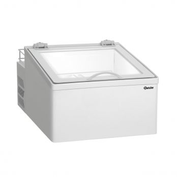 Kapacita: 2 x 1/3 GN nádoby po 5 litrech nebo 4 x 1/6 GN nádob po 2,5 litru. Gastronádoby nejsou součástí dodávky. Materiál nerez, plast, barva bílá. Kapacita 11 litrů. Teplotní rozpětí od -10 do -22 °C, elektronická regulace teploty. Chladicí kapalina R600a / 0,022 kg, klimatická třída 4. Ploché čelní sklo, zvedací dveře s horním závěsem. Dvojité zasklení, bezpečnostní sklo. Digitální displej, elektronické ovládání, vnitřní LED osvětlení. Obsahuje nosný rám pro GN kontejnery. Pro gastronádoby max. hloubky 150 mm. Příkon: 0,184 kW / 220-240 V / 50 Hz. Rozměr: Š 475 x H 730 x V 355 mm. Hmotnost 25 kg.