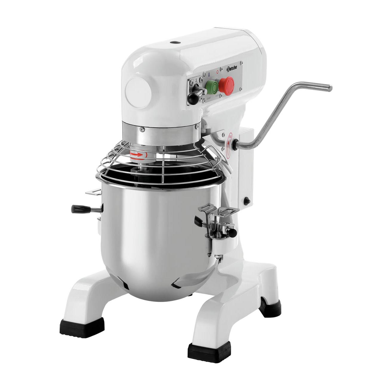 Výkonný planetový mixér vyrobí až 3 kg těsta na jednu operaci. V mixovací nádobě o objemu 10 litrů a dodávaném příslušenství lze připravit širokou škálu druhů těsta, krémů a další. Výrobní množství těsta 3 kg / 10 litrů. Ovládání rychlosti 3 úrovně. Bezpečnostní spínač, ZAP/VYP. Ochrana motoru. Včetně 1 mixovací nádoby, nerezová ocel, odnímatelná 1 plochého šlehače, nerezová ocel 1 hnětací hák, nerez 1 metla, nerezová ocel, litý hliník 1 ochranná mřížka, nerez Příslušenství vhodné do myčky nádobí. Příkon: 450 W / 230 V / 50-60 Hz. Materiál: litina, ocel, lakované. Rozměr: Š 380 x H 440 x V 615 mm. Hmotnost: 53,2 kg.