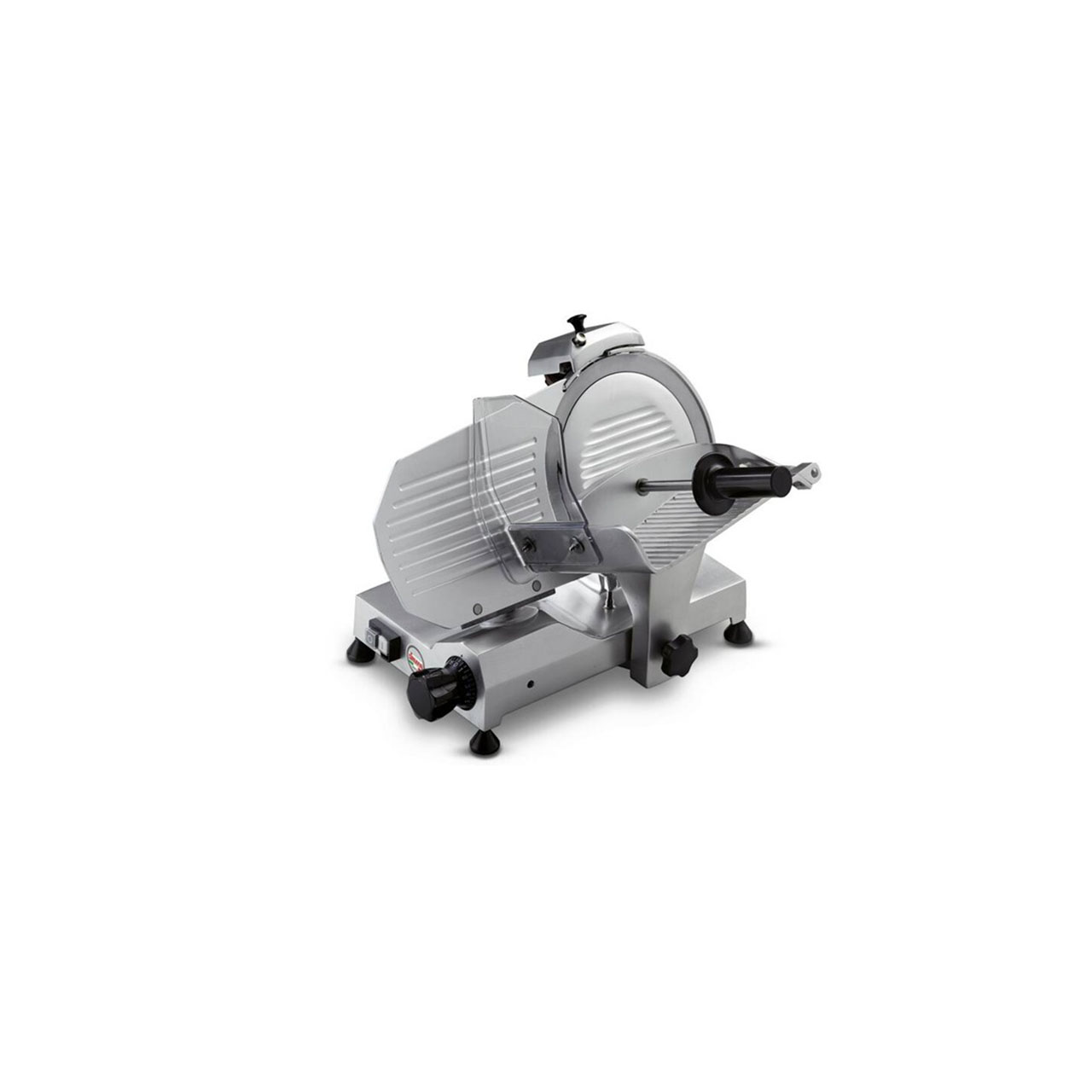 Nářezový stroj MIRRA 250 C od italského výrobce SIRMAN je kompaktní a výkonný profesionální nářezový stroj určený pro bufety, snack bary, restaurace i školní jídelny. Je vybaven nožem o průměru 250 mm s úhlem 25°, který zajišťuje přesné a plynulé krájení. Stroj je vhodný pro všechny druhy uzenin. Robustní konstrukce z potravinářské hliníkové slitiny a nerezu garantuje dlouhou životnost, snadnou údržbu a hygienický provoz. Regulace tloušťky řezu 0–13 mm, ventilovaný motor a spolehlivý řemínkový pohon s ozubeným řemínkem zajišťují stabilní výkon i při střední zátěži (1 hodina provozu / 10 minut pauza). Standardní výbava zahrnuje nerezový hladký nůž, integrované brusné zařízení a gumové nožičky pro bezpečný provoz. Díky kompaktním rozměrům a nízké hmotnosti 16 kg je MIRRA 250 C ideální volbou pro profesionální gastro provozy s důrazem na kvalitu, výkon a jednoduchou obsluhu.