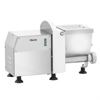 Stroj na těstoviny s kapacitou 1,5 kg. Výroba těsta a výroba těstovin. Nádoba na těsto vhodná do myčky. 5 bezpečných nožiček, víko se 2 plnicími otvory (8 x 112 mm), nízká hlučnost (< 70 dB). Odnímatelná hnětací hřídel a transportní šnek. Vyjímatelná nádoba na těsto. Pro hnětení a vyvalování 12 různých druhů těstovin. Materiál nerezová ocel. V ceně zahrnut montážní nástroj. Součástí dodávky nejsou matrice na těstoviny a uzavírací víčko (volitelně k dispozici na objednávku). Uzavírací víko je nutné pro uzavření výhozu při výrobě těsta! - výroba max. 5 kg/hod. - bezpečnostní spínač, ZAP/VYP - kontrolka ZAP/VYP, hnětení, výdeje těsta Příkon: 0,25 kW / 230 V / 50 Hz. Rozměr: Š 240 x H 510 x V 318 mm. Hmotnost: 16,1 kg.