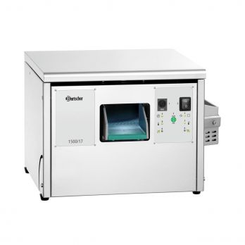 Leštička až pro 1500 kusů příborů/hod. Plnicí množství kukuřičných granulí 1,7 kg. Dmychadlo pro odstraňování granulátu. UV lampa pro dezinfekci příborů. Příborový vstup na pravé straně zařízení, šířka otvoru: 215 mm. Šířka pro příborový výstup v přední částí 100 mm. Leštění pomocí zahřívaných kukuřičných granulí. Vypínač ZAP/VYP. Indikátor světla pro zahřívání, zařízení připraveno k použití, výstražná kontrolka teploty. Automatické vypnutí při otevření krytu. Vyhovuje HACCP díky provozní teplotě 80 °C. Po vypnutí 10 minut běhu pro sušení granulátu. Snadný přístup ke kanálu pro příbory. Tlačítko Start/Stop. Včetně 1 košík na příbory, 2 kg kukuřičných granulí. Materiál nerezová ocel. Příkon: 0,4 kW / 230 V / 50 Hz. Rozměr: 510 x 480 x 365 mm. Hmotnost: 25,6 kg.