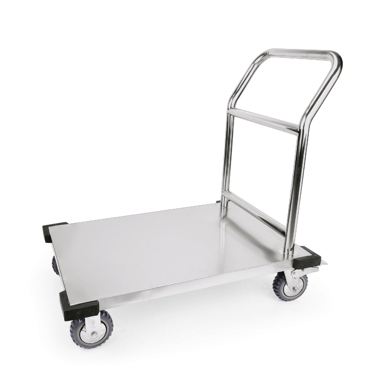 Plošinový vozík, 91,5 x 51 x 95 cm, nerez. Ideální pro profesionální použití v gastronomii. Vysoce kvalitní materiál zajišťuje dlouhou životnost a spolehlivost.