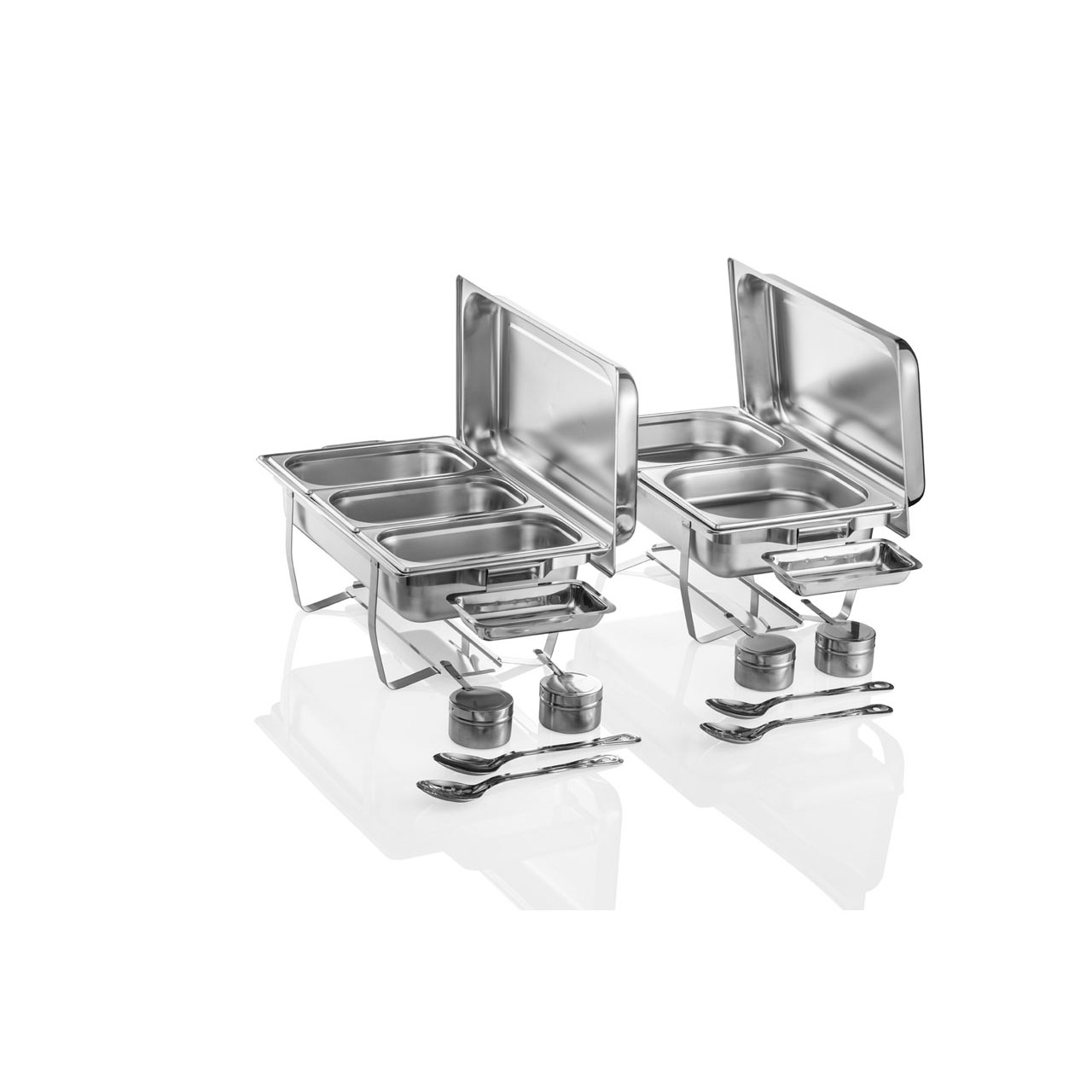 Chafing Dish GN 1/1 sada, 59 x 34 x 49 cm, sada po 2 ks, chromniklová nerezová ocel. Ideální pro profesionální použití v gastronomii. Vysoce kvalitní materiál zajišťuje dlouhou životnost a spolehlivost.