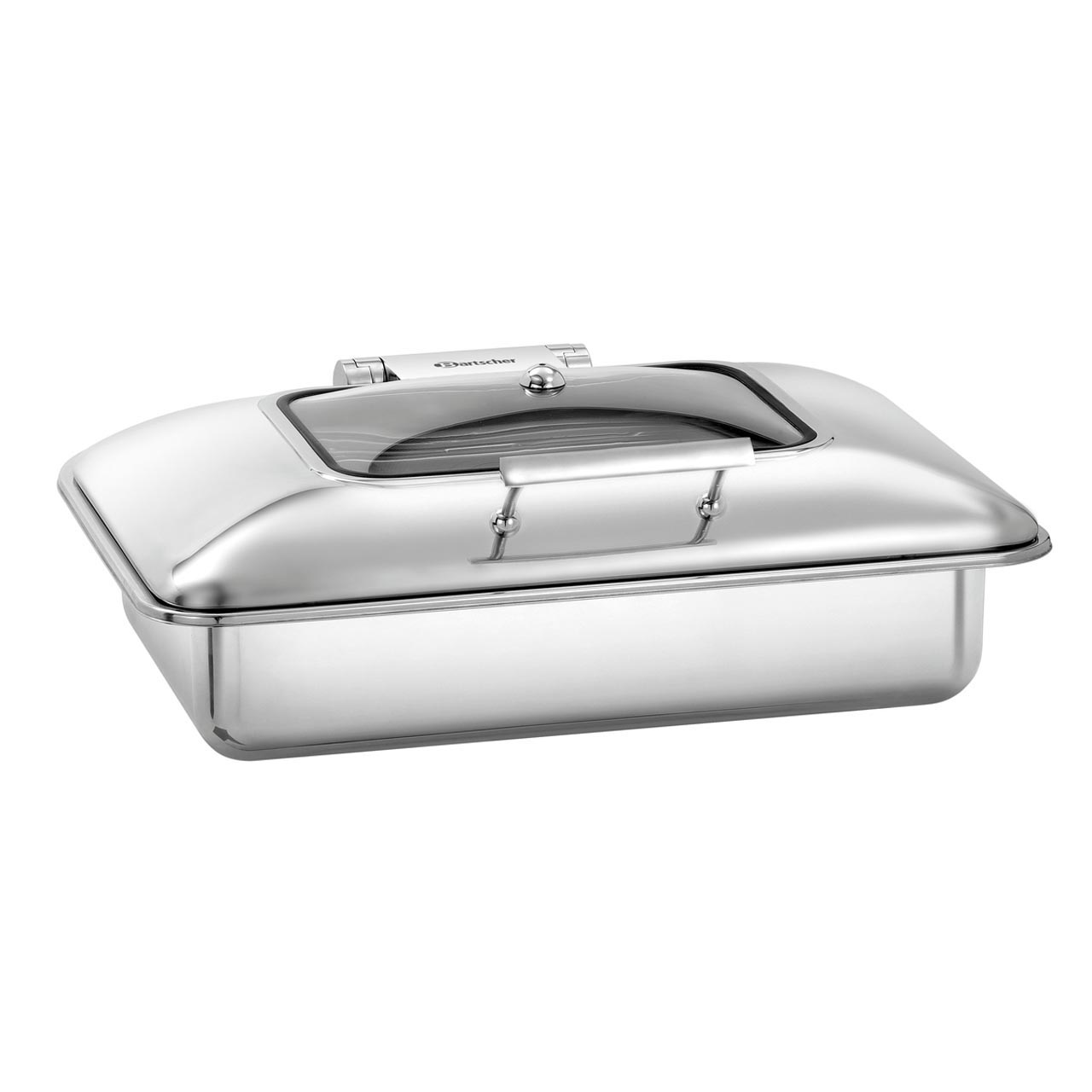 Materiál ušlechtilá ocel, otvor z plexiskla. Objem 8,5 litrů. Vnitřní regulace teploty pomocí zabudované varné desky pro indukční nebo sklokeramický ohřev. Včetně gastronádoby GN 1/1 - 65 mm. Chafing není stohovatelný. Hydraulické otvírání víka, jednoduché vyjmutí gastronádoby. Rozměr: Š 580 x H 420 x V 205 mm. Hmotnost: 7 kg. K použití zařízení je nutná externí varná deska.