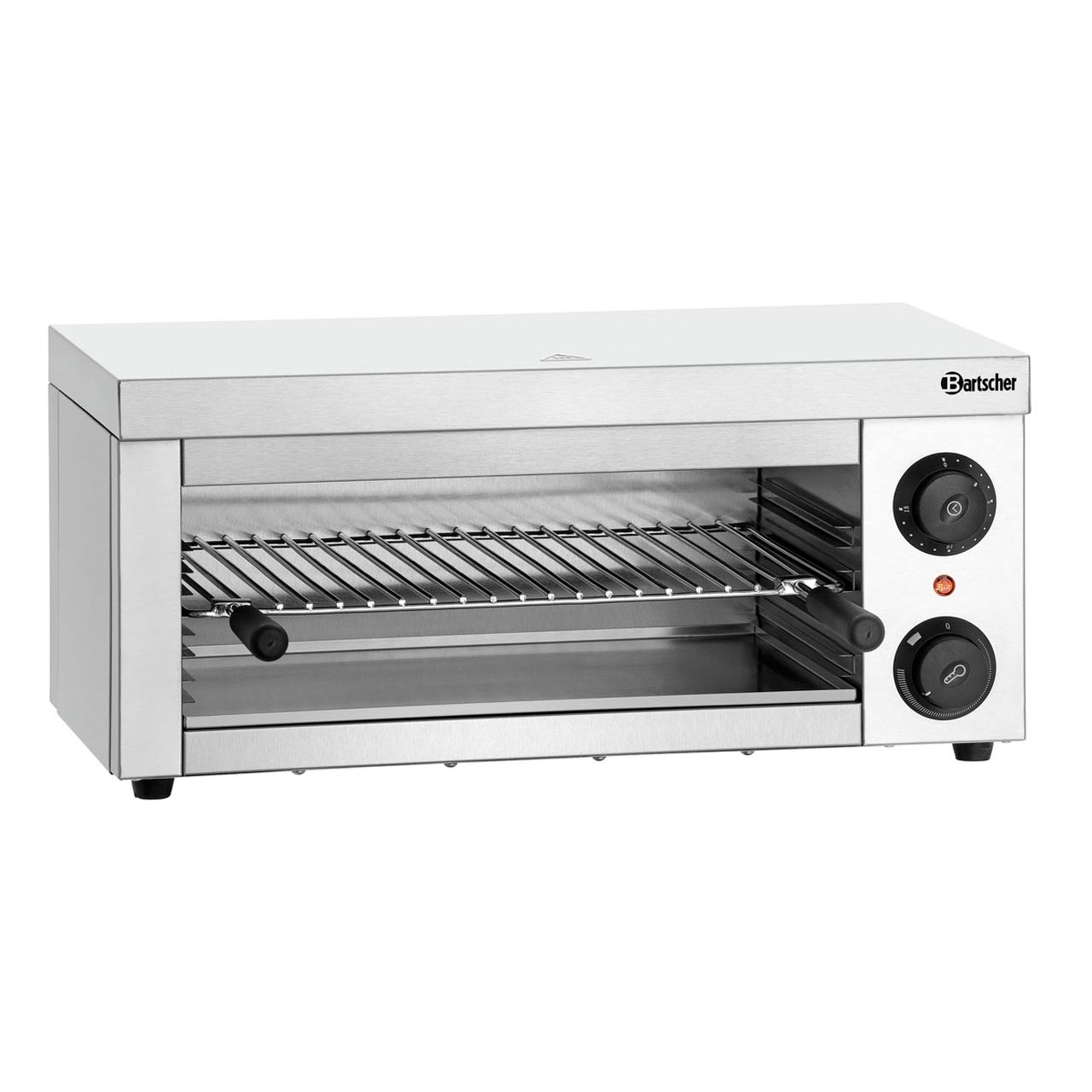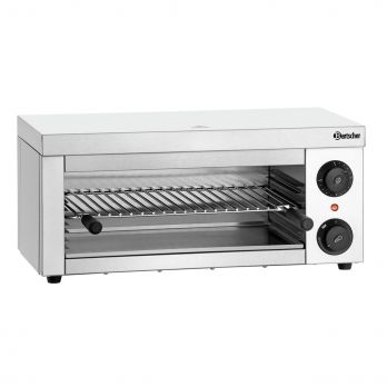 Salamandr s infračerveným topením, 1 topná zóna, 1 topné těleso výškově nenastavitelné. Výškově nastavitelný rošt, Š 447 x H 250 mm. Manuální nastavení času s aktivací až na 15 minut, energická regulace Simmerstat. Manuální ovládání, kontrolka zahřátí. Se zavěšením na zadní straně lze použít jako stolní zařízení nebo pro montáž na ohnivzdorné povrchy stěn. Příkon 2 kW / 230 V. Materiál nerezová ocel. Dodáváno včetně 1 roštu, odkapávací misky. Rozměr: Š 610 x H 305 x V 280 mm. Hmotnost: 14,0 kg