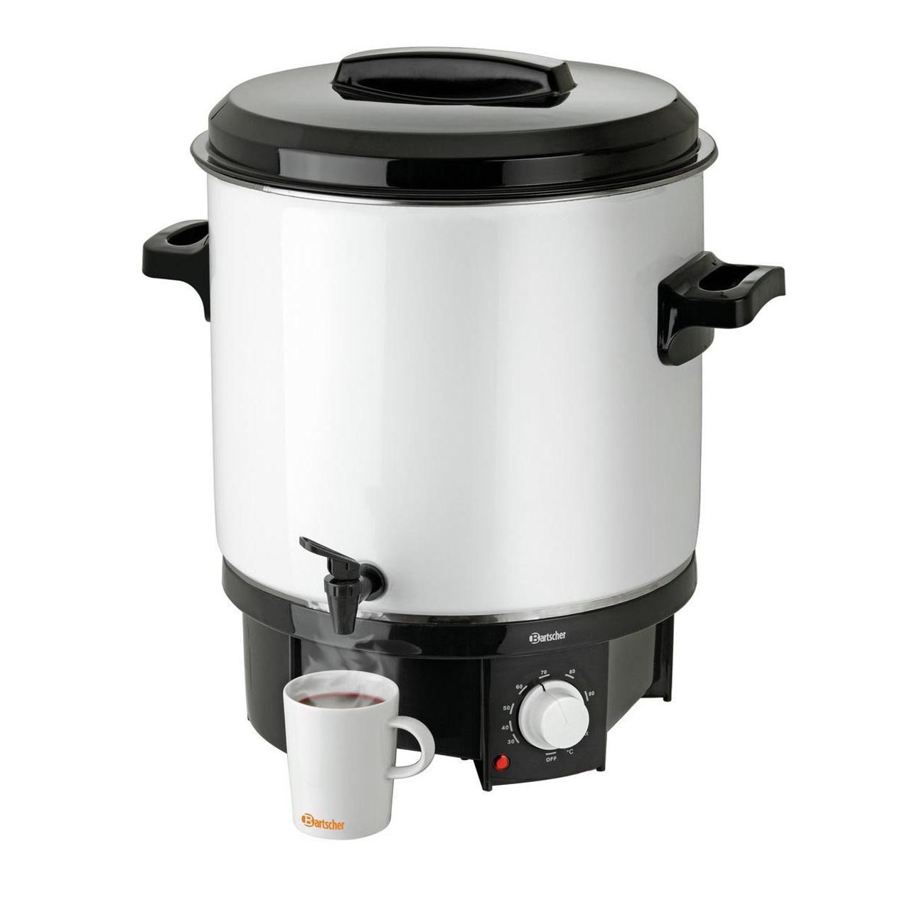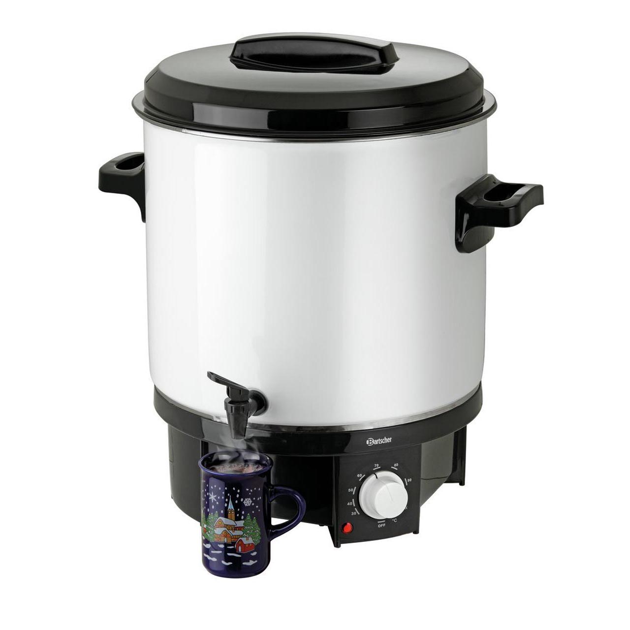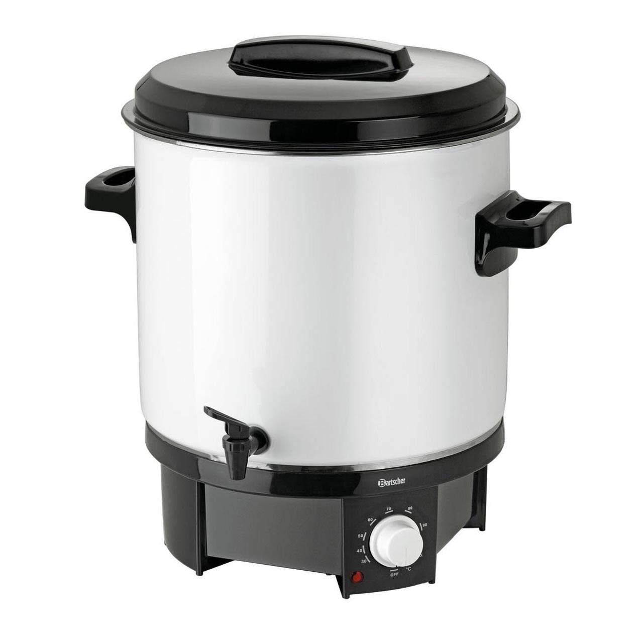 Nádoba hrnce: emailový povlak odolný proti poškrábání; podstavec hrnce, výpustný kohout, úchyty a víko: z potravinářského plastu. Uzavřené dno se skrytým topným tělesem. Objem: 21,0 litrů. Příkon: 1,8 kW/230 V. Plynulá regulace teploty: 30 °C až 100 °C. Rozměry: pr. 370 mm, 500 (V) mm. Hmotnost: 5,4 kg. Příslušenství zahrnuje 1 rošt o pr. 320 mm.