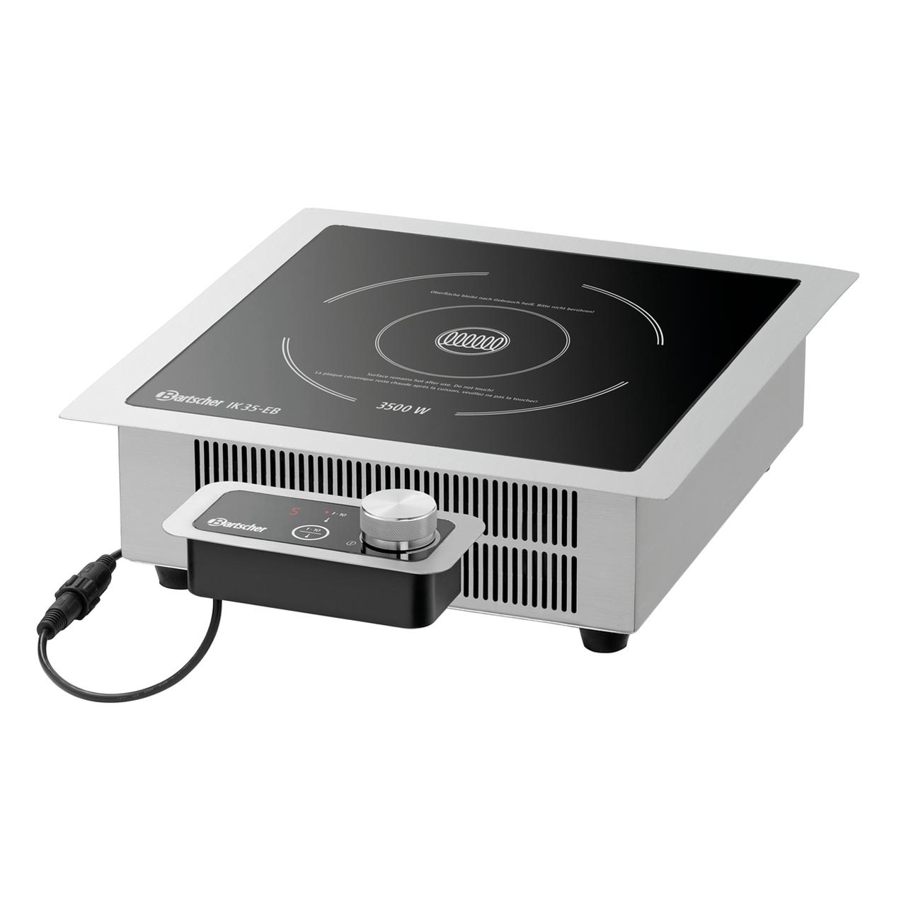 Indukční vařič Bartscher IK 35-EB lze mnohostranně využít - od bufetu, přes catering až po tzv. "foodtrucks". Vizuálně atraktivní výkonný indukční vařič se samostatným ovládacím panelem. Vařič je vyroben z chromniklové oceli 18/10 s varnou skleněnou plochou. Teplotní rozsah od 60 °C do 240 °C, interval nastavení teploty je 20 °C. Průměr plochy pro vaření je 210 mm, varná deska o rozměrech 310 x 225 mm (Š x H). Oddělený elektronický dotykový ovládací panel s délkou kabelu 0,8 m, digitální displej, kontrolka ON/OFF, detekce pánve, 10 úrovní výkonu, regulace výkonu, ukazatel teploty a času. Z bezpečnostních důvodů dojde po určité době nečinnosti přístroje k jeho automatickému vypnutí.
