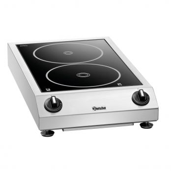 Indukční vařič Bartscher se skleněnou varnou plochou Schott Ceran, Vařič je vyroben z chromniklové oceli 18/10, se 2 varnými deskami. 9 stupně výkonu, digitální displej, ochrana proti přehřátí, schopnost detekce pánve/hrnce. Rozměry varné desky: 290 x 470 mm Průměr varné desky: 210 mm Výkon: 3,5 kW / 230 V Rozměry vařiče: 340 x 590 x 110 mm (Š x H x V) Hmotnost: 11,1 kg Z bezpečnostních důvodů dojde po určité době nečinnosti přístroje k jeho automatickému vypnutí.
