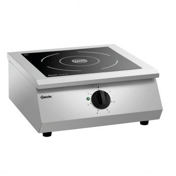 Indukční vařič o výkonu 8 kW na velikost hrnce až 320 mm. Materiál ušlechtilá ocel. 6 úrovní výkonu, regulace výkonu, průměr skleněné varné desky 320 mm, výkon indukční varné desky max. 8000 W. Rozměr skleněného pole: Š 400 x H 400 mm. Manuální ovládání. Kontrolka ZAP/VYP, zahřátí, ochrana proti přehřátí, rozpoznání hrnce/pánve. Příkon: 8 kW / 400 V / 50 Hz. Rozměr: Š 500 x H 540 x V 245 mm. Hmotnost: 20,6 kg.