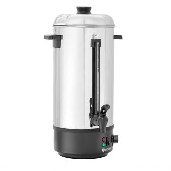 Určeno pro ohřev a udržování horké vody z nerezové potravinářské oceli, podstavec z odolného plastu, indikátor úrovně naplnění. Objem: 10,0 litrů. Regulátor teploty 30 - 100 °C. Příkon: 2,5 kW/230 V. Rozměry: průměr 213 mm x 505 (V) mm. Hmotnost: 2,3 kg.