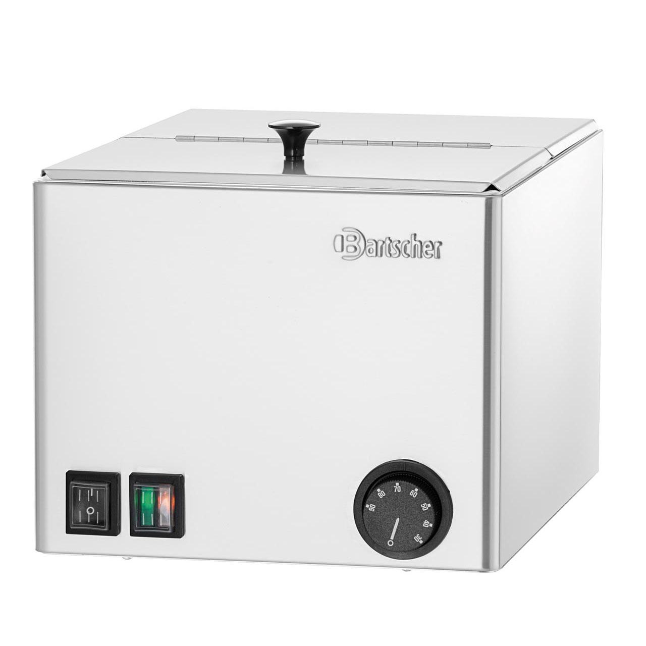 Možnost využití i jako malou vodní lázeň. Z nerezové potravinářské oceli. Kontrolka ohřevu. Teplotní rozsah: 30 až 90 °C. Příkon: 1,0 kW / 230 V. Rozměry: 270 (Š) x 350 (H) x 240 (V) mm. Příslušenství zahrnuje: výklopné víko. Možnost využití i jako malou vodní lázeň (1 x 1/2 nebo 2 x 1/4 GN, o hloubce 150 mm).