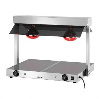 Prezentujte svým hostům jídlo v kvalitě, jakou si zaslouží. Ohřívací deska se 2 samostatně přepínatelnými infra lampami. Vnější opláštění je z nerezové potravinářské oceli. Součástí je hygienický zákryt z plexiskla. K udržování jídel na požadované teplotě slouží 2 infralampy, každá se samostatným ovládáním (každá polovina je vyhřívaná topným tělesem). Vyhřívaná sklokeramická deska - uprostřed dělená. Rozsah teplot: 30 °C - 85 °C. Příkon: 0,8 kW/230 V. Rozměry: 740 (Š) x 565 (H) x 570 (V) mm. Hmotnost: 14 kg. Výška světla 300 mm.
