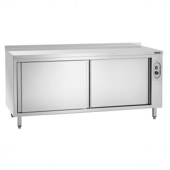 Ohřívací skříně s lemem 40 mm z nerezové oceli hloubky 700 mm různých šířek. Nastavitelné nohy, pracovní plocha ušlechtilá ocel. Rozsah teplot od 20 do 80 °C. Elektronická regulace, kontrolka, jednostranné posuvné dveře. Vnitřní prostor dělený na 2 části. 1 plná police není výškově nastavitelná. Nohy z čtvercové trubky 40 x 40 mm. Příkon 2 kW / 230 V / 50/60 Hz. Rozměry = Š x H x V v mm. Nosnost = max.nosnost pracovní desky / max. nosnost police.