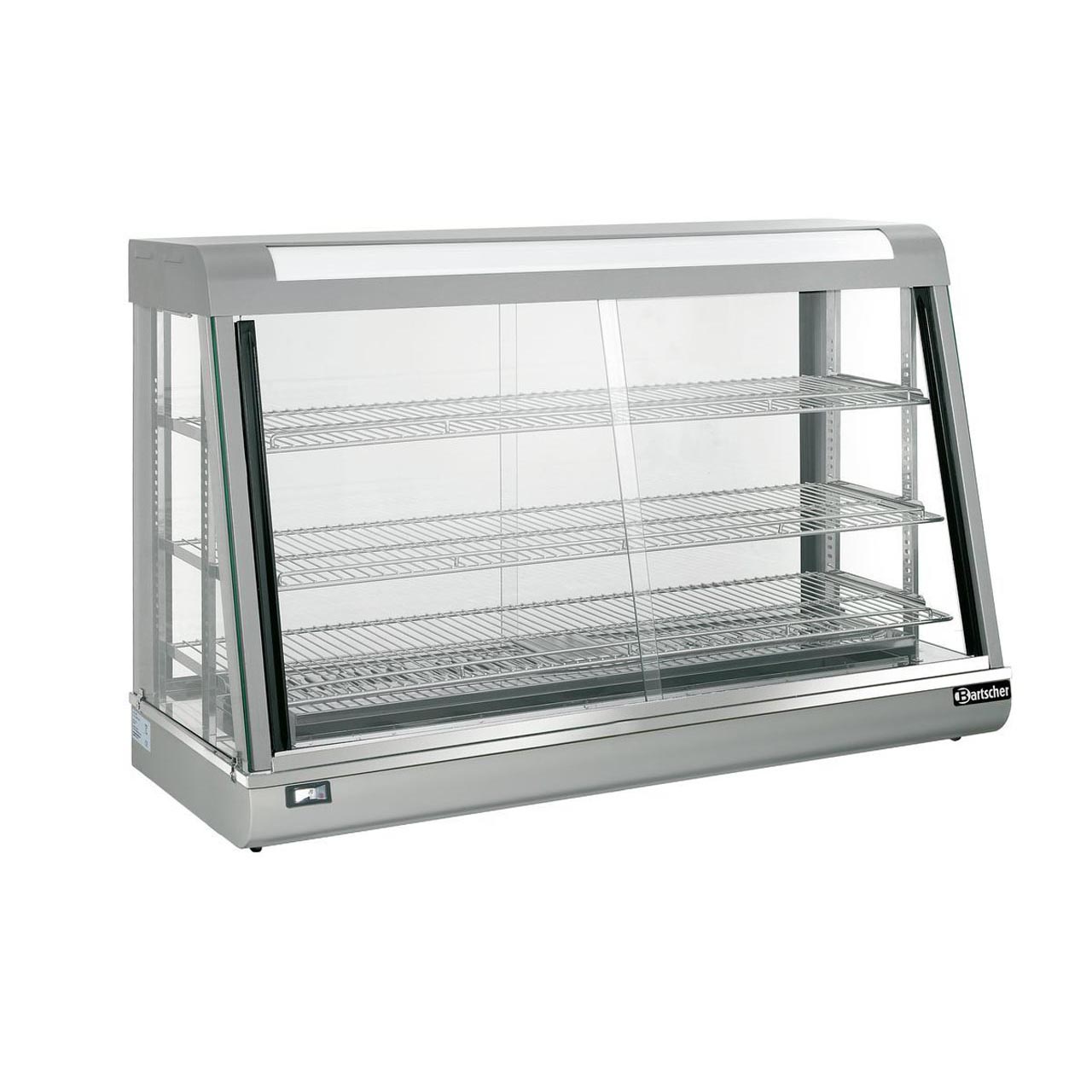 Objem : 373 litrů, s osvětlením. Součástí vyhřívané vitríny jsou 3 výškově nastavitelné rošty (o rozměrech: 1120 (Š) x 315/340/360 (H) mm), a miska na vodu pro zvlhčování vzduchu. Termostatické řízení. Provedení: uvnitř chromové, z vnějšku lakované. 2 posuvná dvířka zepředu i zezadu. Teplotní rozsah: 30 až 90°C. Příkon: 2,2 kW / 230 V. Rozměry: 1200 (Š) x 480 (H) x 790 (V) mm. Hmotnost: 76,0 kg.