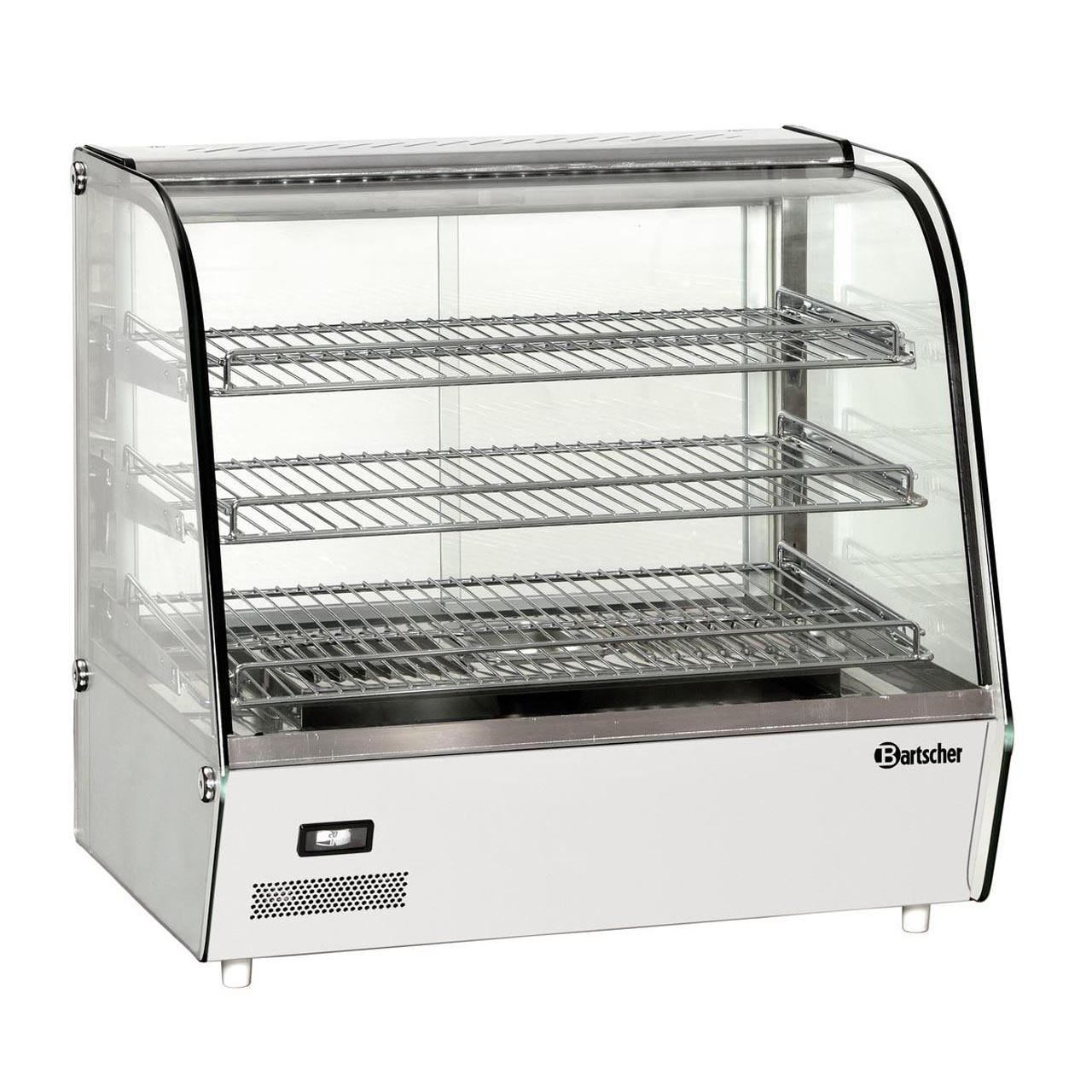 Posuvná dvířka zezadu. Součástí vyhřívané vitríny jsou 3 nastavitelné pochromované rošty. LED osvětlení a miska na vodu pro zvlhčování vzduchu. Termostatická regulace. Teplotní rozmezí: +30 °C až + 90°C. Provedení: nerez, kolem dokola prosklená, bezpečnostní sklo.