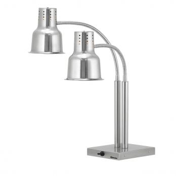 Infračervená lampa dvojitá s pohyblivým ramenem. Včetně 2 infralamp, čiré sklo. Barva stříbrná, materiál ušlechtilá ocel. Infračervená lampy. Délka kabelu: 1,7m. Vlastnosti: odvětrávaný ocelový reflektor. Světlá výška: variabilní (max. 520 mm) Obsahuje 2 infračervené lampy, každá 0,25 kW, barva skla: čirá Příkon: 0,5 kW / 230 V / 50Hz Materiál: nerezová ocel, barva stříbrná Rozměr: Ś 330 x H 515 x V 700 mm Hmotnost 9,6 kg