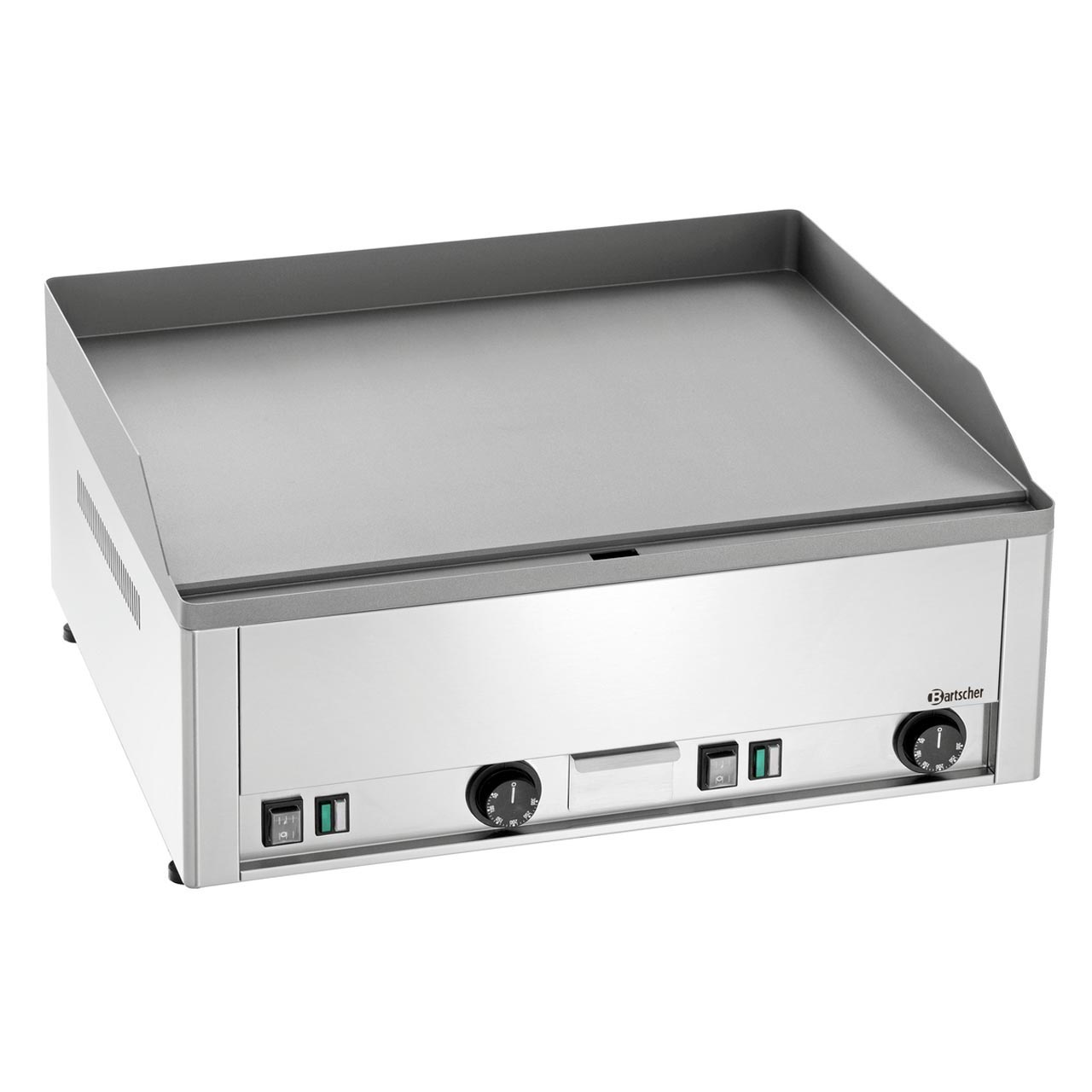 Dvojitá stolní grilovací deska: plášť z nerezové potravinářské oceli CNS 18/10, hladká deska z litiny. Rozměry pracovní plochy: 650 (Š) x 480 (H) mm. Regulace teploty termostatem od 50 do 300 °C, kontrolka chodu a vyhřátí, nádoba na tuk. Příkon: 6 kW/400 V. Dodáváno s připojovacím kabelem. Rozměry: 660 (Š) x 580 (H) x 310 (V) mm. Hmotnost: 41 kg.
