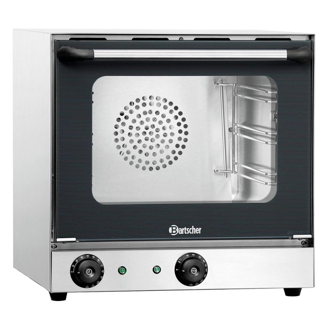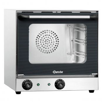 Horkovzdušná trouba Bartscher z ušlechtilé oceli se 3 vsuvy pro rozměr GN 1/2. Dvojitá skleněná dvířka, zaoblená pečící komora, odnímatelné podpůrné lišty. Manuální regulace. Včetně 3 roštů. Vyjímatelné nosné lišty. Parametry: 3 vsuvy x GN 1/2, vnitřní rozměr Š 350 x H 290 x V 275 mm, vzdálenost mezi rošty 70 mm. Teplotní rozsah od 50 až 300 °C, termostat, časový rozsah od 0-120 minut, časovač, doba ohřevu: cca 3 minuty (180 °C). Příkon: 2,7 kW / 230 V / 50/60 Hz Rozměr: Š 460 x H 575 x V 465 mm Hmotnost: 25,5 kg