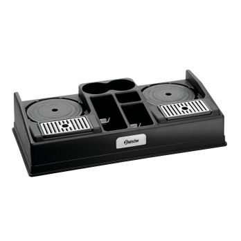 Stanice bez příslušenství.Vyrobena z černého odolného plastu, ideální pro všechny termokonvice do průměru 19 cm. Vhodná pro různé velikosti kelímků a šálků díky vyjímatelnému podstavci pod termokonvicemi. dvě odnímatelné plastové vložky nastavitelné ve 3 úrovních výšky. Stanice má 5 přihrádek (dvě na kelímky, jedna na cukr, mléko a lžičky nebo míchátka). Včetně 2 odkapních mřížek. Rozměry: 660 (Š) x 340 (H) x 145 (V) mm. Hmotnost: 1,8 kg. Termokonvice objednávejte samostatně.