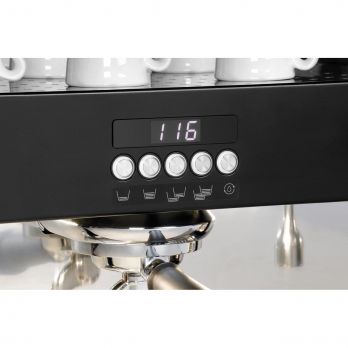 Pákový kávovar. Provedení portafiltr. Odkládací prostor pro šálky. Automatické čištění. Nástavec pro malé šálky a standardní espresso. Snadno a rychle si připravíte i dvě kávy najednou. 1 bojler o objemu 17,5 litrů, 3 spařovací skupiny, 1 tryska s horkou vodou a 2 parní tryska (chladný dotyk). 3 programy, automatické plnění bojleru a čištění spařovací skupiny. Čistící program. Automatický přívod vody elektromagnetickým ventilem. Předspaření, regulovatelné dávkování teplé vody, indikace tlaku manometrem. Časovač. ON/OFF tlačítko, LED osvětlení, lze spínat samostatně, Digitální ukazatel: nastavení teploty kotle, výběr a programování nápojů, spuštění čisticího programu, časovač, předspaření, varování. Ovládání elektronické/ruční, ON/OFF, všestranné nastavení kávových specialit. Včetně: 1 vypouštěcí hadice 150 cm, 1 portafiltr s 1 výstupem, 3 portafiltry se 2 výstupy, 1 přívodní hadice 55 cm. Materiál lakovaný ocelový plech Příkon: 4,35 kW / 230 V / 50 Hz. Rozměr: Š 900 x H 595 x V 465 m
