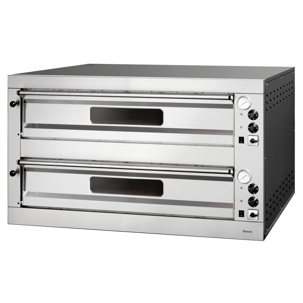 Dvoukomorová pizza pec na 2x9 ks průměr 33 cm. Příkon 24 kW / 400 V. Rozsah teploty od 50 do 450 °C. Funkce komory horní/spodní ohřev samostatně regulovatelný. Rozměr vnitřní Š 1050 x H 1050 x V 150 mm. Okno ve dveřích, vnitřní osvětlení, 2x komora. Izolace rockwool (kamenná vlna), termostatická analogová kontrola. Tepelně odolná kamenná deska. Materiály: CNS 18/10, lakovaný ocelový plech, pozinkovaný. Rozměr: Š 1310 x H 1270 x V 760 mm. Hmotnost 247 kg.