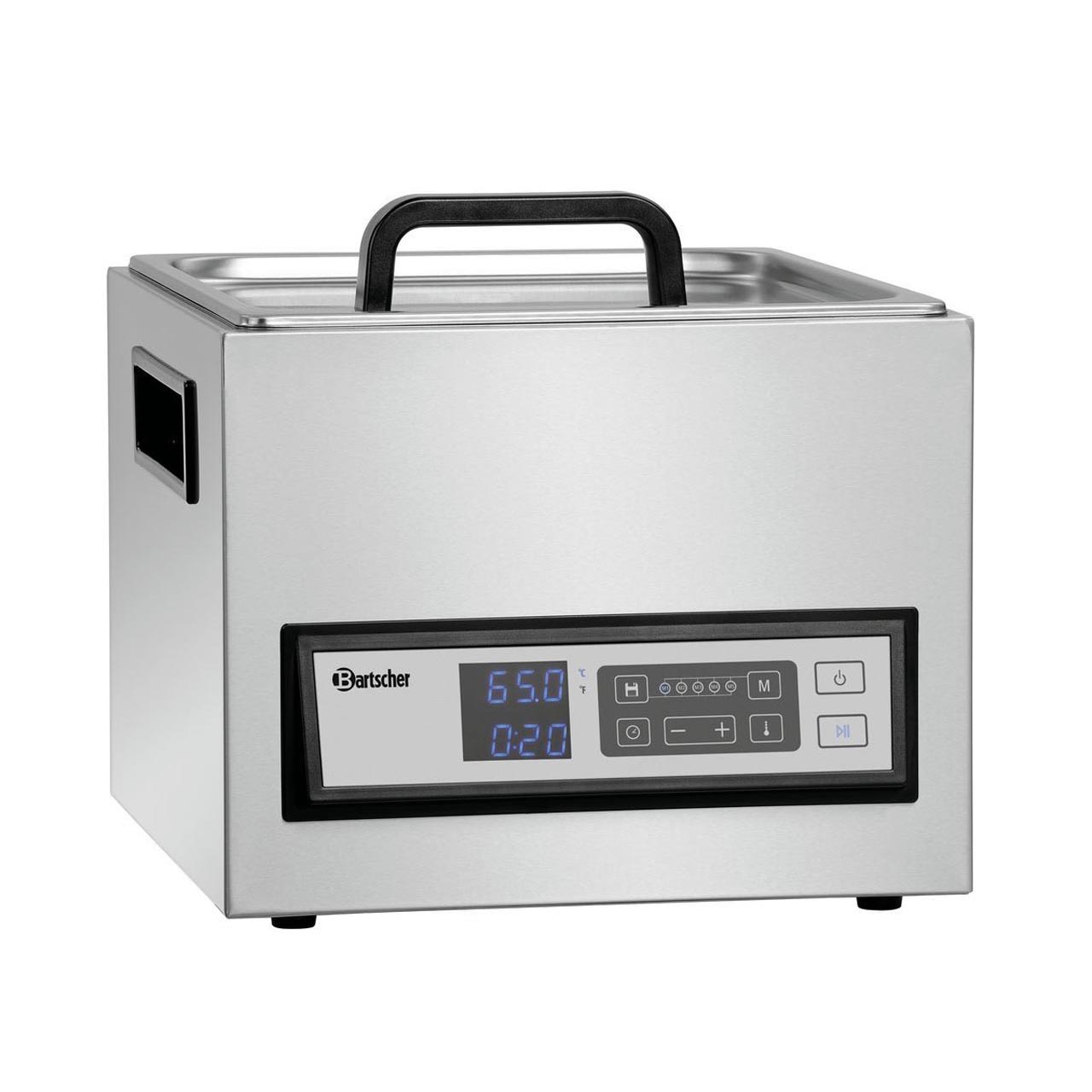 Vodní lázeň Sous-Vide značky Bartscher pro precizní, lahodné a jemné vaření. Bod vaření lze přesně určit díky individuálnímu nastavení času a teploty. Vodní lázeň je vyrobena z ušlechtilé nerezové oceli. Vana o rozměrech 300 (Š) x 330 (H) x 200 (V) mm a objemu 16 litrů. Teplotní rozmezí od 25 do 90 °C. Regulace teploty po 0,1 °C. Elektronická řídící jednotka s digitálním displejem, ochrana proti suchému proudu, akustický časovač po 1 minutě. Funkce paměti s možností uložení až 5 programů.