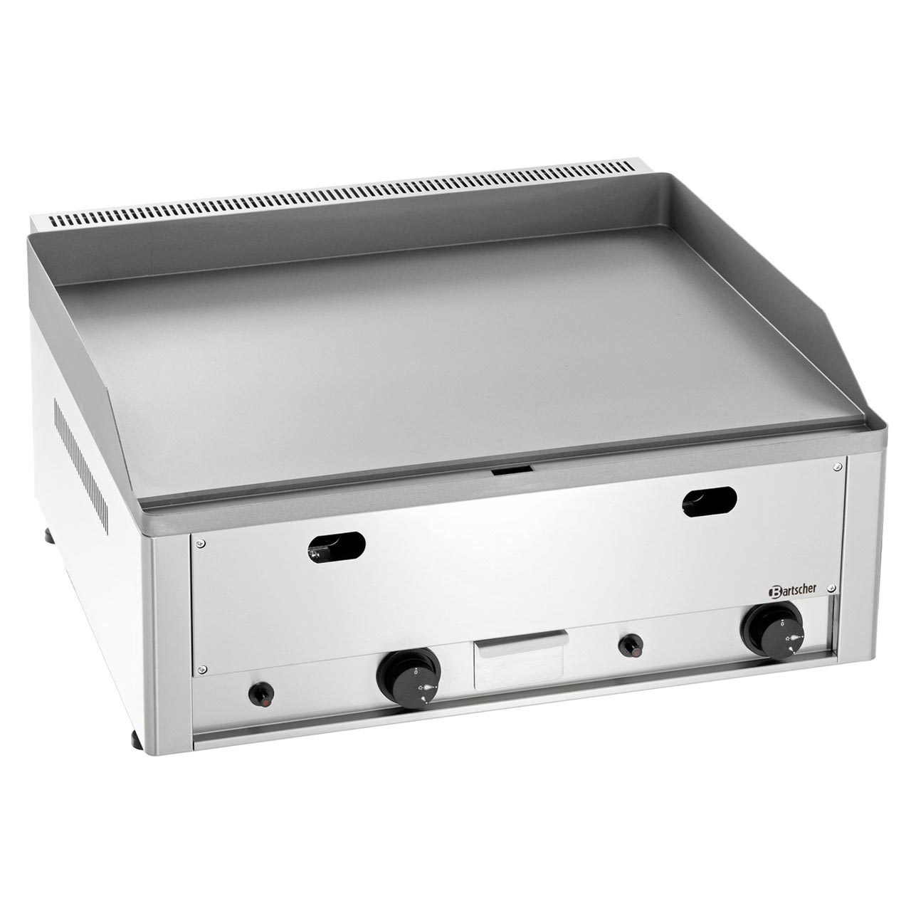 Stolní grilovací deska: plášť z CNS 18/10, hladká deska z litiny. Piezzo zapalování, regulace výkonu, nádoba na tuk. Využití na propan butan i zemní plyn. Trysky jsou přiloženy. Příslušenství zahrnuje čisticí škrabku. - regulace teploty termostatem - kontrolka chodu a vyhřátí - dvě ohřívací zóny samostatně regulovatelné - 4 výškově nastavitelné plastové nohy - rozměr grilovací plochy: Š 650 x H 480 mm - rozměry celkem: Š 660 x H 580 x V 310 mm - příkon: 8 kW / plyn - hmotnost 44,5 kg