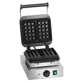 Vaflovač s pečícími deskami ve tvaru obdélníku. Nerezové provedení, pečící desky z litiny. Velikost desky: 160 (Š) x 100 (H) x 32 (V) mm. Termostatická regulace teploty: 50 - 300 °C. Součástí : čistící kartáč. - příkon: 2,2 kW / 230 V - rozměry: 285 (Š) x 470 (H) x 245 (V) mm - hmotnost: 21,75 kg