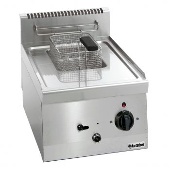 Stolní elektrická fritéza s výpustným ventilem a trvale upevněným topným tělesem. Fritéza elektrická s objemem 6 litrů. Materiál nerezová ocel, CNS 18/10. Jednoduchá údržba. Provozní režim: elektrický 1 vana, objem 6 litrů 1 fritovací koš, rozměr: Š 190 x H 270 x V 120 mm Topné těleso trvale nainstalované. Výpustný ventil tuku. Ovládání knoflíkem, kontrolka. včetně 1 koše. Vypínač zapnuto/vypnuto: ne Příkon: 3,3 kW / 230 V / 50 Hz. Rozměr: Š 400 x H 600 x V 290 mm. Hmotnost: 17,8 kg