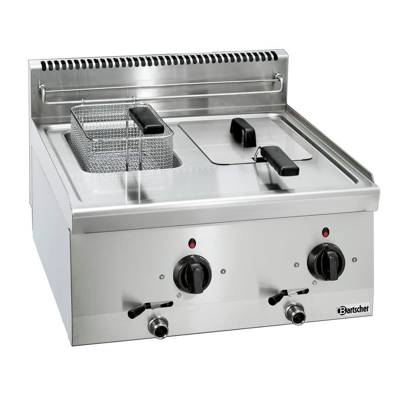 Stolní elektrická fritéza řady 600. Fritéza objemu 2 x 6 l s výpustným kohoutem. Fritéza Š 600 x H 600 mm s příkonem 6,6 kW. Topné těleso trvale nainstalované. Materiál CNS 18/10. Parametry: Provozní režim: elektrický 2x vana, objem 2x6 litrů 1 fritovací koš, rozměr: Š 190 x H 270 x V 120 mm Topné těleso trvale nainstalované. Výpustný ventil tuku. Ovládání knoflíkem, kontrolka. včetně 2 košů. Vypínač zapnuto/vypnuto: ne Příkon: 6,6 kW / 400 V / 50/60 Hz, 3 NAC Rozměr: Š 600 x H 600 x V 290 mm. Hmotnost: 29 kg