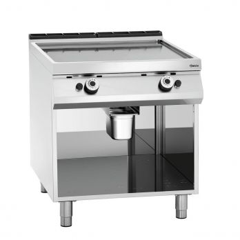 Grilovací plynová deska 2 tepelné zóny hladké. Grilovací deska plynová s otevřenou spodní konstrukcí a stabilními nožky s nastavitelnou výškou volně stojící v kvalitním nerezovém provedení. Materiál CNS 18/10. Provozní režim: plyn. Piezo zapalování. Spodní konstrukce: otevřená. 2 teplotní zóny samostatně regulovatelné. Plocha na smažení: ocel, hladká, rozměr: Š 723 x H 760 mm. Nastavitelné nohy od 900 do 950 mm. Na zemní plyn. Součástí sady jsou trysky pro zemní i kapalný plyn. Příkon: 18 kW. Rozměr: Š 800 x H 900 x V 900 mm. Hmotnost: 118 kg.