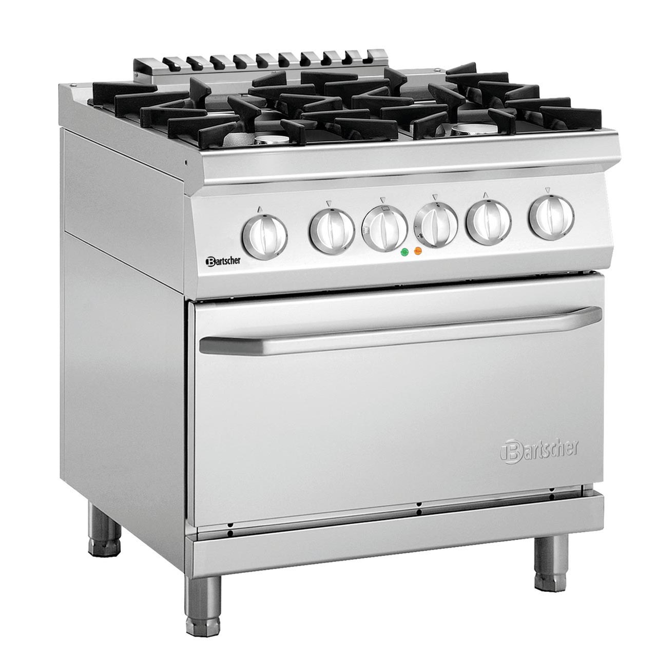Sporák plynový se 4 hořáky a elektrickou troubou GN 2/1. Litinové rošty s odnímatelnou sběrnou vanou. Varná deska 330 x 270 mm. Materiál: CNS 18/10. Provozní režim: plyn / elektrický 4 plynové hořáky Manuální zapalování, dvouokruhový plynový hořák, pilotní plamen. rozměr varných desek: 330 x 270 mm příkon: 29,4 kW (rozdělení plotýnek: 2 x 6,2 kW, 2 x 8,5 kW) trouba: elektrická – oběhový vzduch – CNS 18/0 příkon/napětí: 5,4 kW / 400 V / 50 Hz; připojení 3 NAC objem: 126 litrů rozměr: Š 670 x H 550 x V 320 mm / GN 2/1 teplotní rozmezí od 100 do 300 °C / 3 vsuvy vzdálenost 90 mm / odsávání par Nastavitelné nohy od 850 do 900 mm. Rozměr: Š 800 x H 700 x V 850 mm. Hmotnost: 111 kg Zemní plyn H (20 mbar), trysky na kapalný plyn (50 mbar) a trysky na zemní plyn L (20 mbar) součástí dodávky.