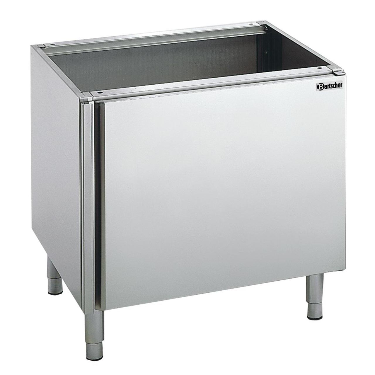 Volně stojící podstavec 1 dveřový. Materiál CNS 18/10. Nastavitelné nohy. Rozměr: Š 1000 x H 550 x V 580 mm. Hmotnost: 29 kg.