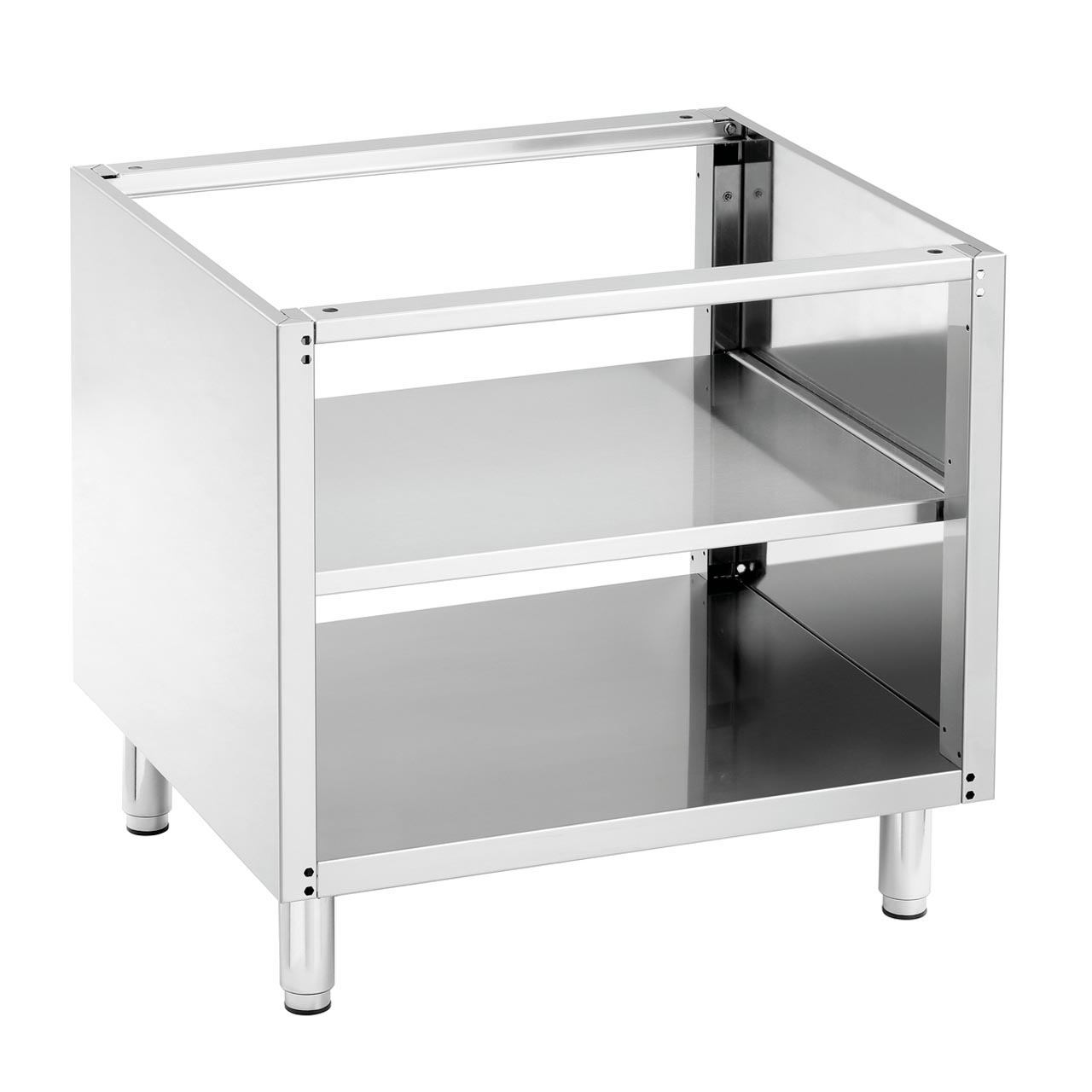 Volně stojící otevřený podstavec. Materiál CNS 18/10. Nastavitelné nohy. Rozměr: Š 400 x H 550 x V 580 mm. Hmotnost: 13,5 kg.