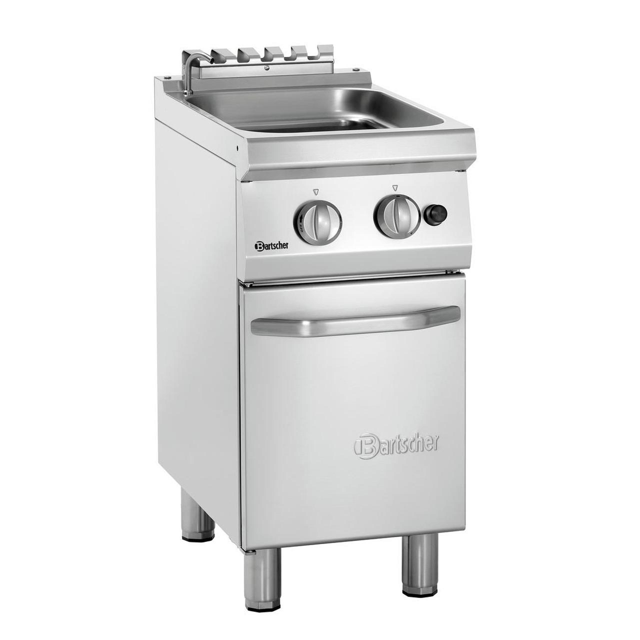 Plynový vařič nudlí s velikostí vany GN 2/3. Objem vany 24 litrů. Materiál CNS 18/10. Koše nejsou součástí dodávky. Provozní režim: plynový 1 vana: objem 24 litrů. Křídlové dveře. Ventil pro naplňování vodou a vypouštěcí ventil. Bezpečnostní termostat. Piezo zapalování. Nastavitelné nohy od 850 do 900 mm. Příkon: 8,47 kW. Rozměr: Š 400 x H 700 x V 850 mm. Hmotnost: 45 kg. Zemní plyn H (20 mbar), trysky na kapalný plyn (50 mbar) a trysky na zemní plyn L (20 mbar) součástí dodávky.
