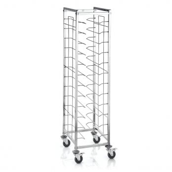 Vozík na podnosy pro 12 podnosů 45,5 x 35,5 cm, 53 x 42 x 180 cm, chromniklová nerezová ocel. Ideální pro profesionální použití v gastronomii. Vysoce kvalitní materiál zajišťuje dlouhou životnost a spolehlivost.