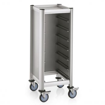 Vozík na podnosy SINGLE MENSA, pro 7 podnosů, stříbrná, 51,5 x 47,5 x 125 cm, MDF dekor dřeva/hliník. Ideální pro profesionální použití v gastronomii. Vysoce kvalitní materiál zajišťuje dlouhou životnost a spolehlivost.