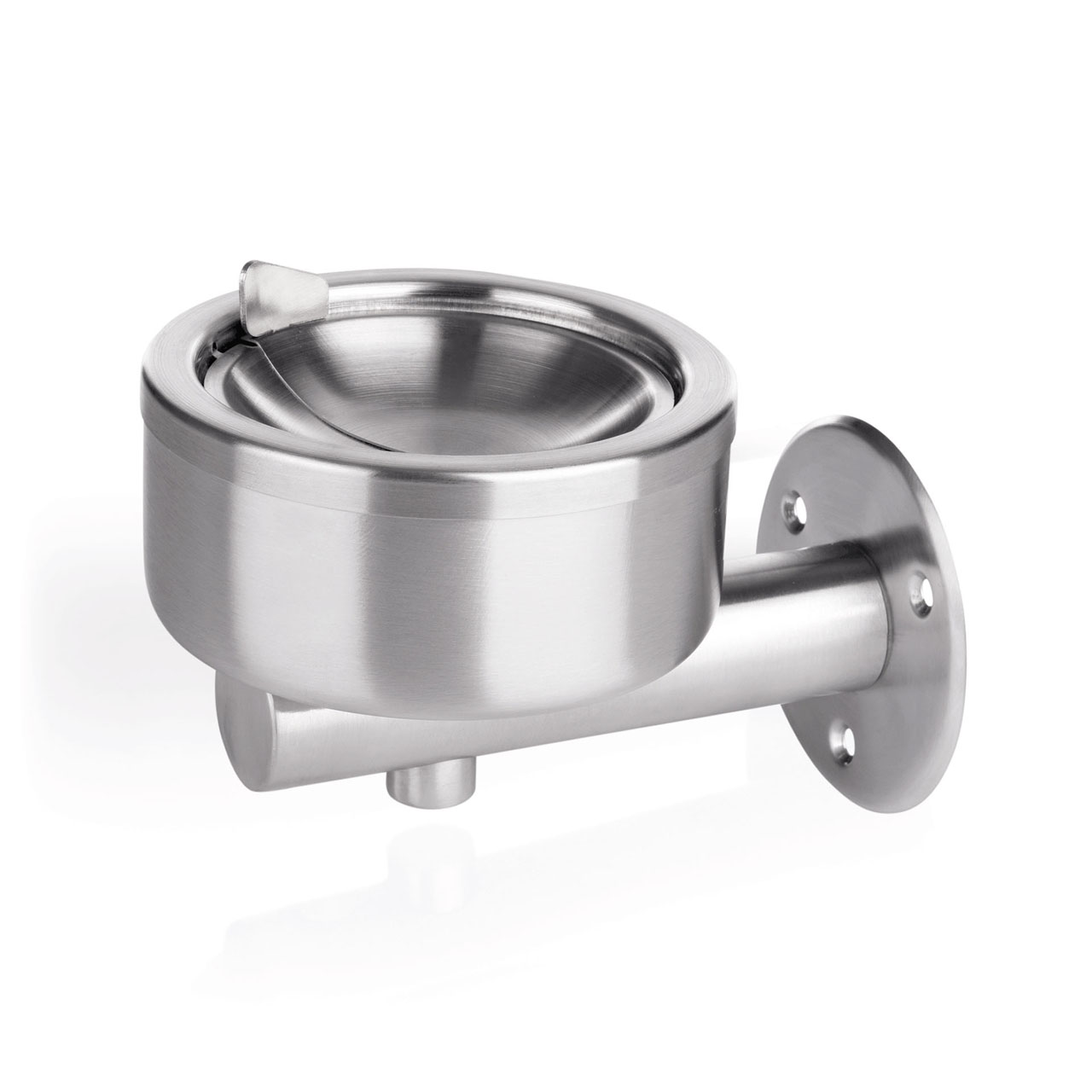 Nástěnný popelník s výklopným mechanismem, průměr 12 cm, chromniklová nerezová ocel. Vynikající volba pro moderní gastronomii i náročné domácí použití.